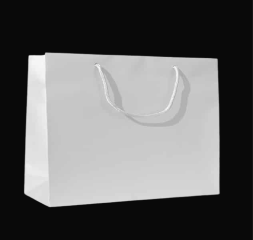 Elegantes y sencillas bolsas de papel estilo boutique con asas de cordón.