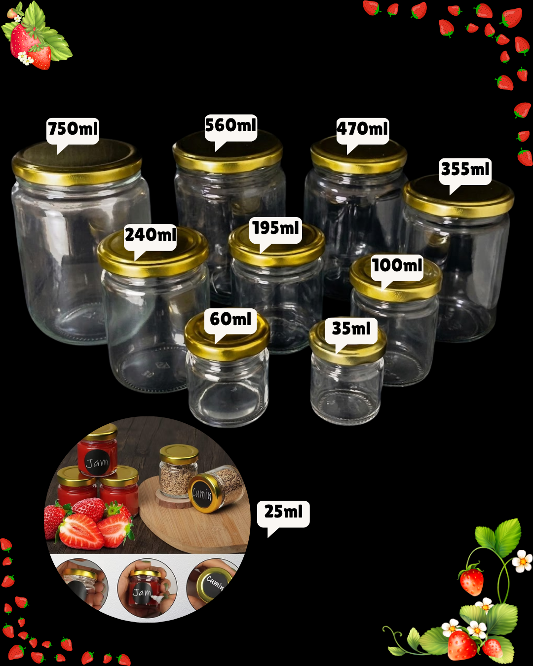 -Utilidad versátil: ideales para almacenar alimentos secos, mezclas de especias, hierbas, comida para bebé, mermelada, miel, gelatina, velas caseras y otros.